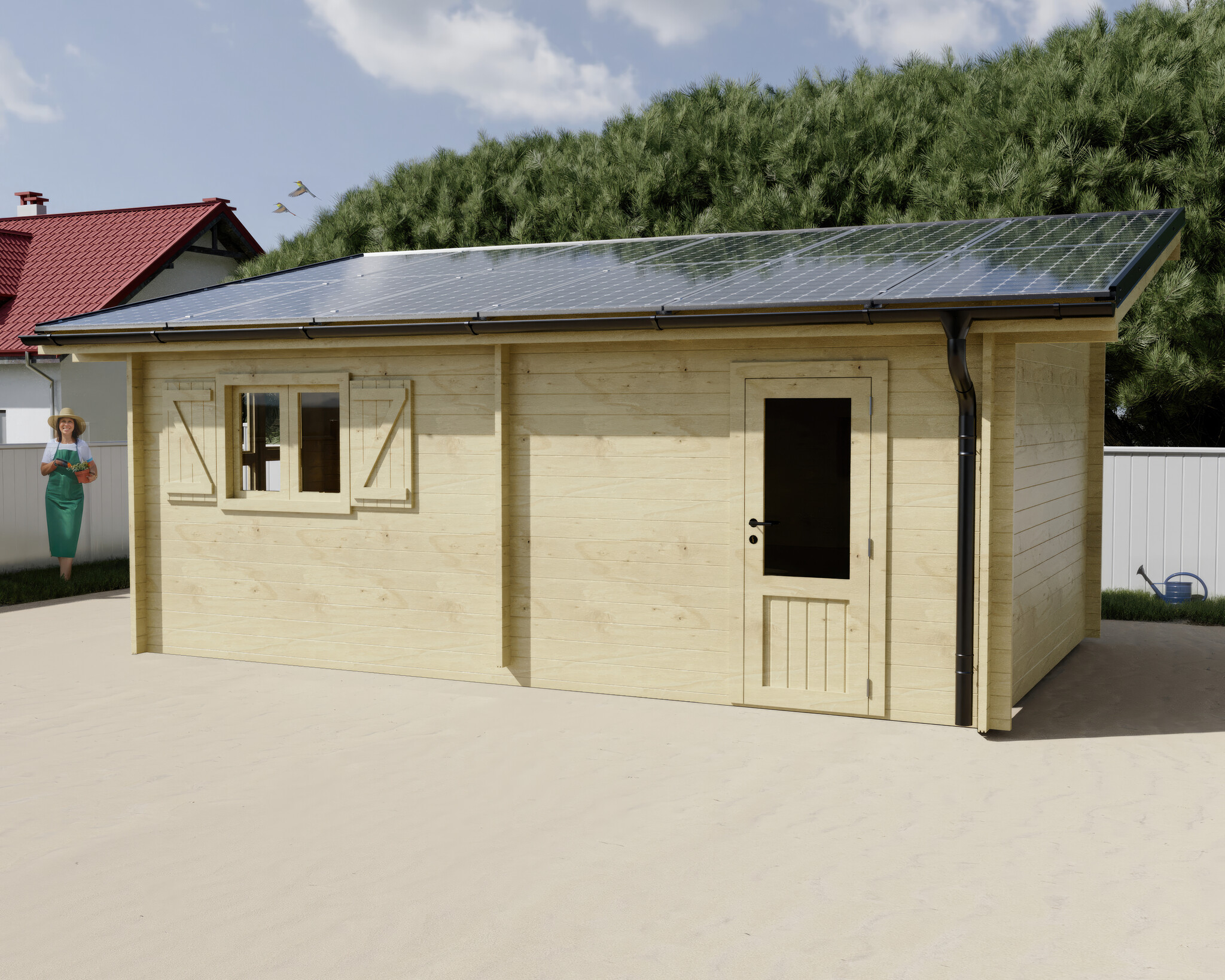 Garage photovoltaïque Lumibois 6kWc, Epicéa massif 42mm, 5.70 x 3.49 m, 19,89 m²