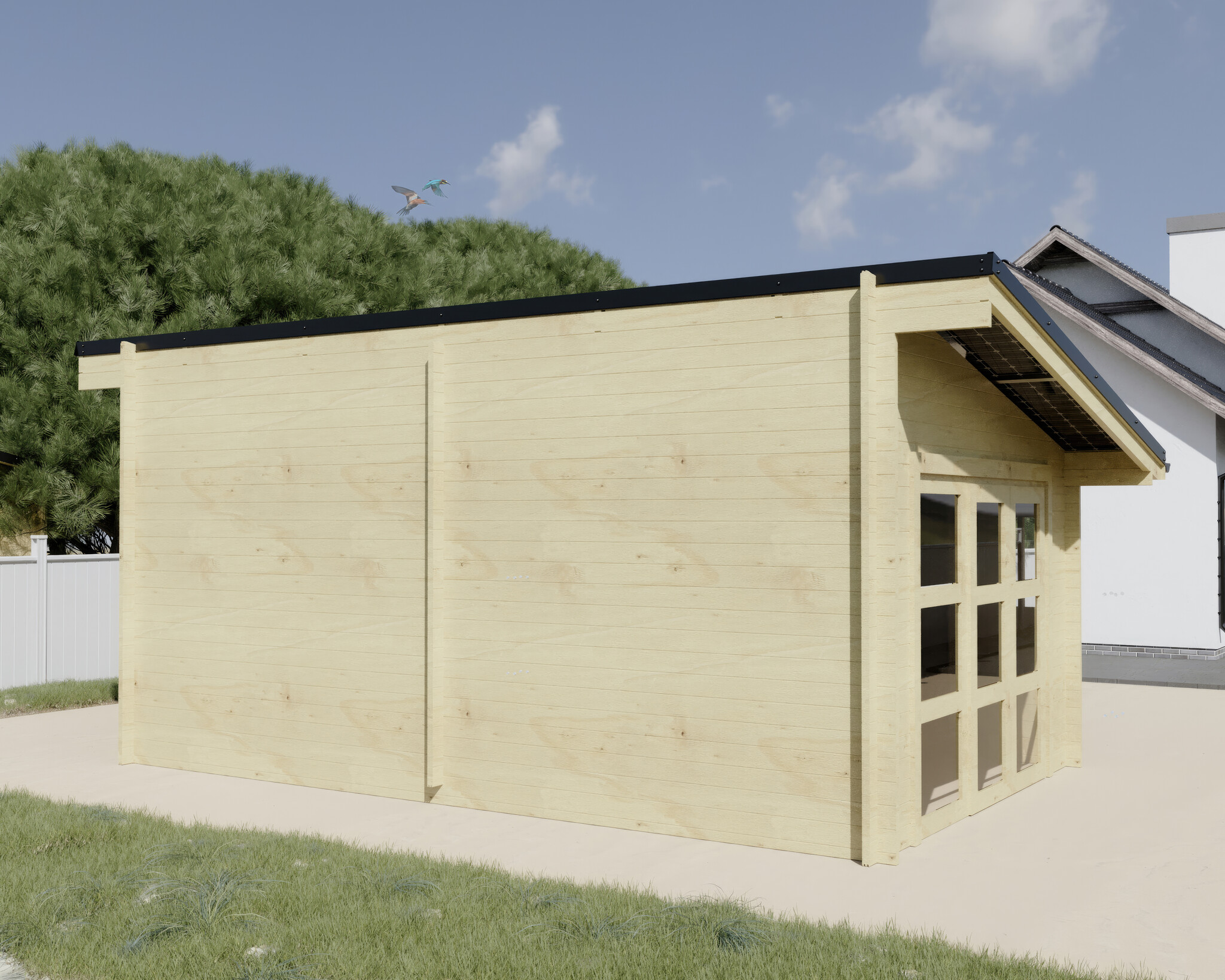 Le garage LUMIBOIS mono pente allie fonctionnalité, performance énergétique et esthétique moderne. Construit en épicéa massif non traité, ce garage robuste repose sur des madriers de 42 mm d’épaisseur à double rainurage, assurant une isolation et une stabilité accrues. Les menuiseries à tenons et mortaises, complétées par des fenêtres ouvrantes, garantissent une finition haut de gamme.