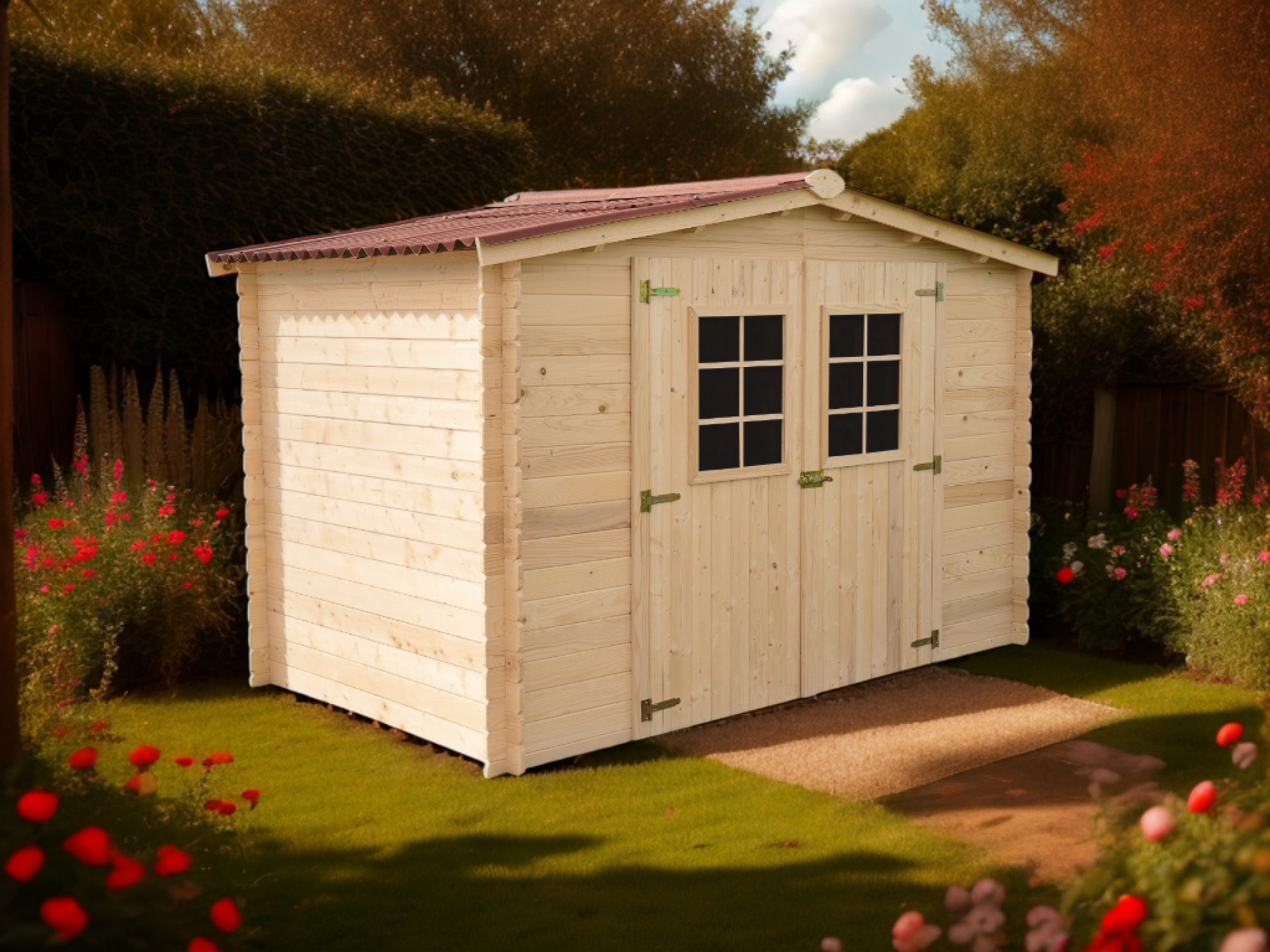 L'abri en madriers 20mm est un choix idéal pour ceux qui cherchent à combiner qualité et prix abordable. Avec une grande façade de 3 mètres, il offre un espace suffisant pour ranger vos outils de jardin, votre matériel de piscine ou encore pour créer un espace de détente. Il est équipé d'un toit en plaques ondulées pour une durabilité accrue et d'une porte avec une fenêtre intégrée pour une meilleure luminosité à l'intérieur. Pour assurer sa stabilité à long terme, il doit être installé sur une dalle en béton. Pour résumer, cet abri en madriers 20mm est spacieux, durable, écologique.