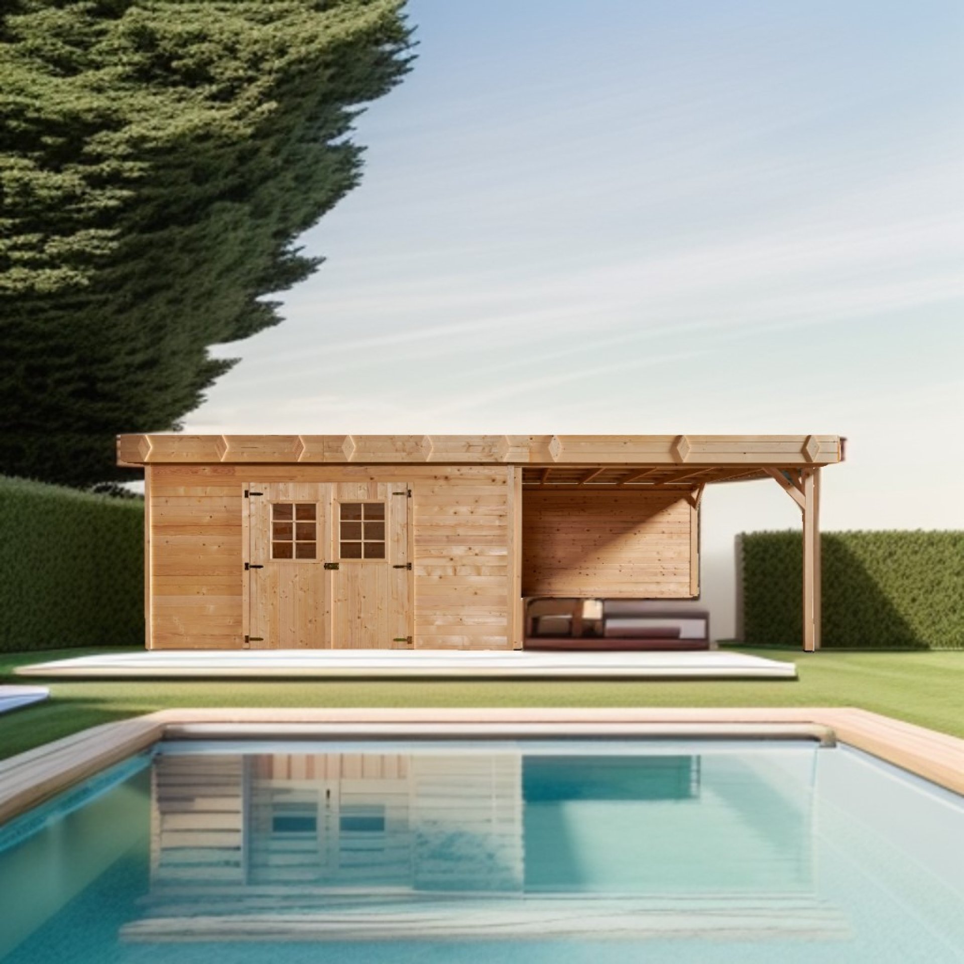 Abri Kemper, Epicéa madriers 28mm, 7.10 x 4.00m, 29.00m²