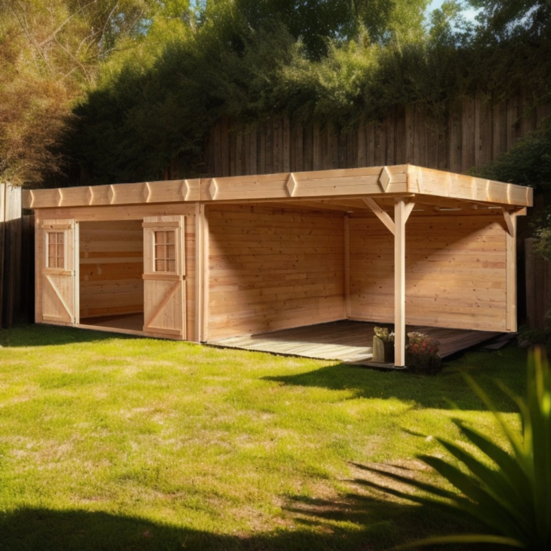 L'Abri avec terrasse couverte Madriers massifs 28 mm toit plat avec bac acier est un produit aux lignes modernes, qui allie esthétique et fonctionnalité. Il est livré avec une terrasse couverte, mais sans plancher, vous permettant de l'aménager selon vos besoins. La porte peut être montée sur les 4 côtés, vous offrant une flexibilité maximale dans l'aménagement de votre espace. La toiture en bac acier garantit une grande longévité et une réduction des risques d'infiltration. Ce produit fabriqué en EUROPE est également certifié FSC, garantissant une production respectueuse de l'environnement. Il doit être installé sur une dalle béton obligatoirement, et doit être fixé au sol avec le kit soubassement K-SXL pour protéger les éléments de départ.
