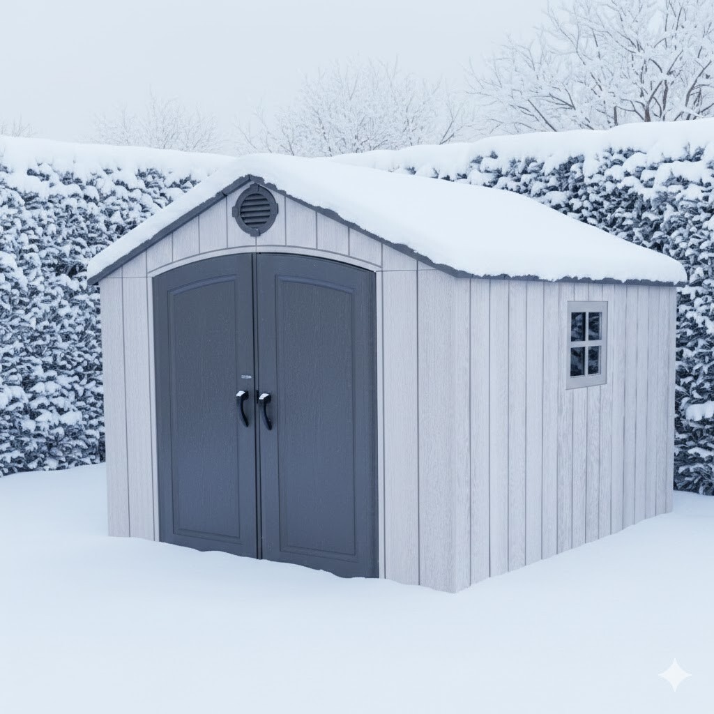 | - Étagère réglable en hauteur incluse pour personnaliser l'utilisation de l'abri, 6 crochets muraux | |