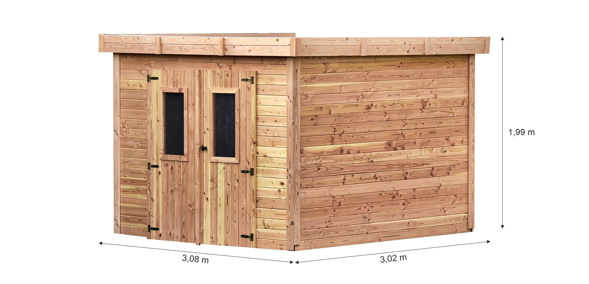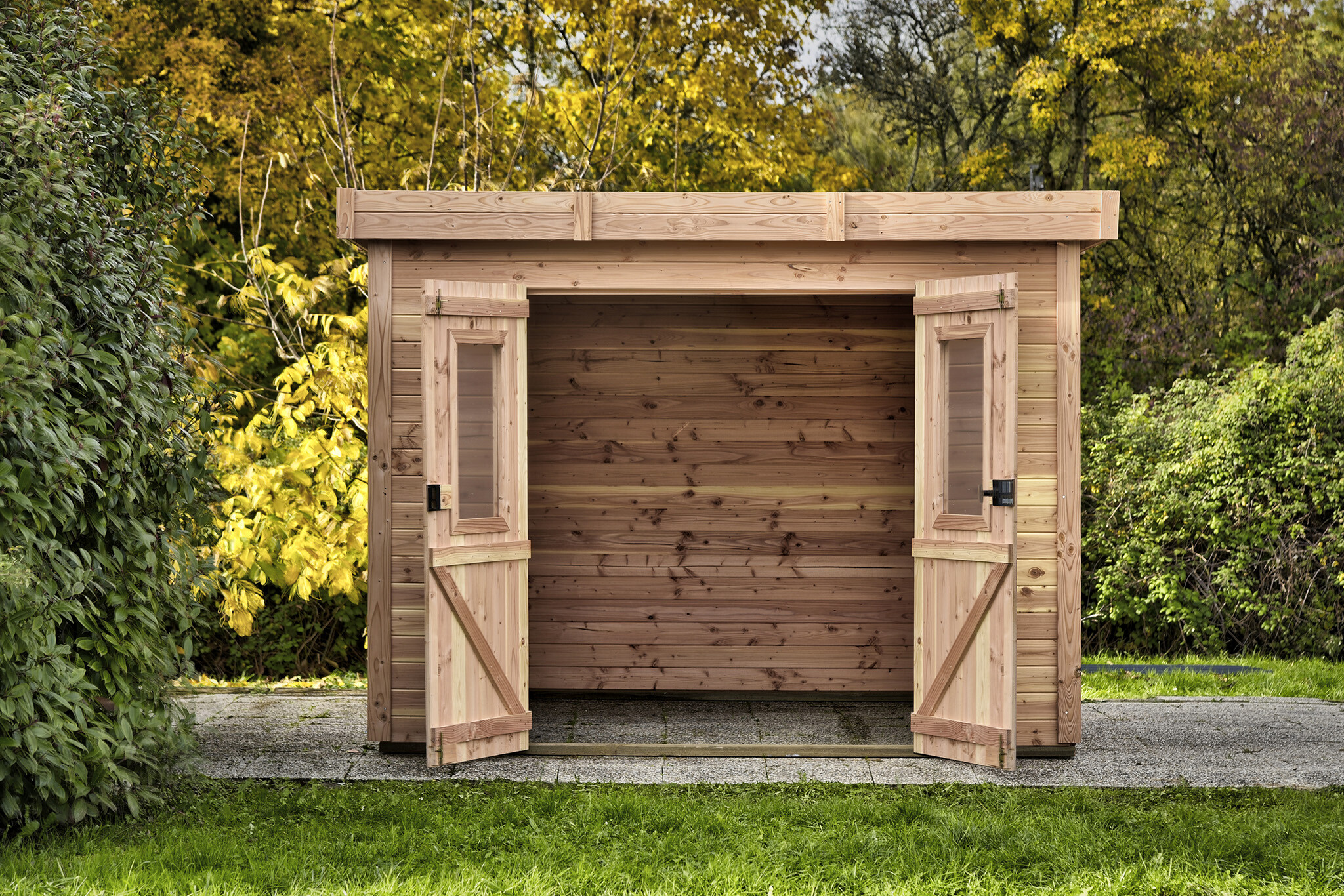 Abri SICILIA épicéa - Madriers 2822 - Toit plat polycarbonate