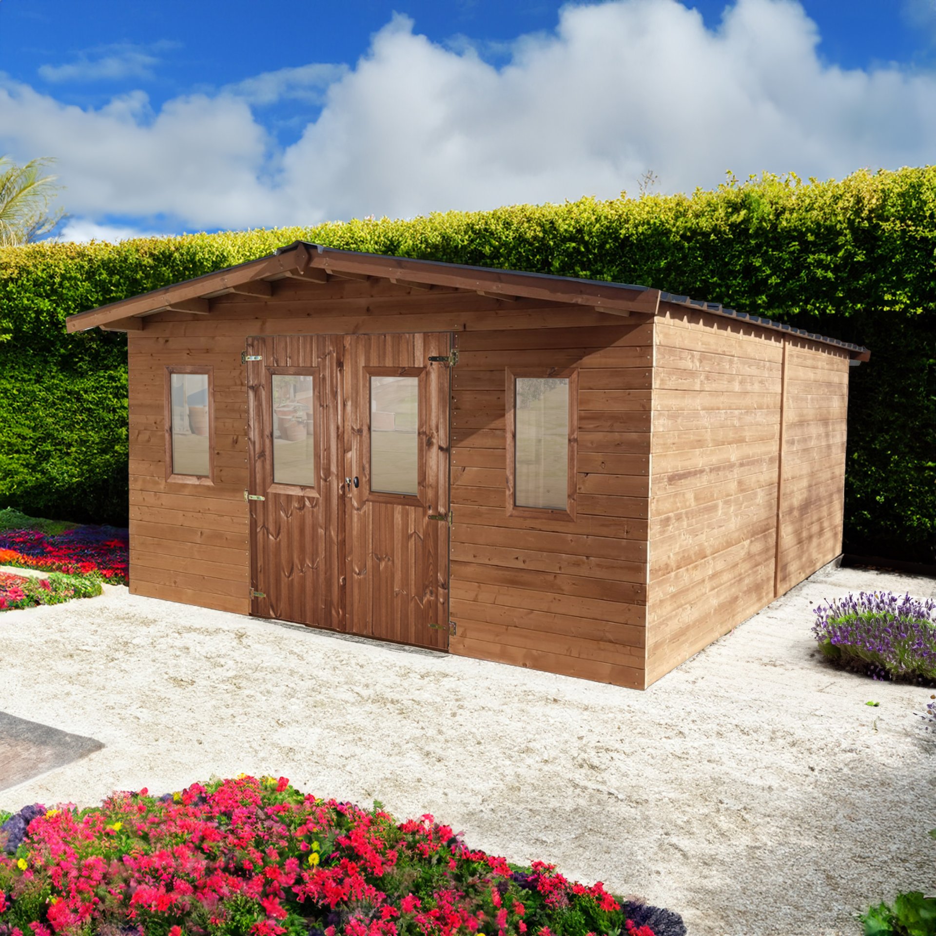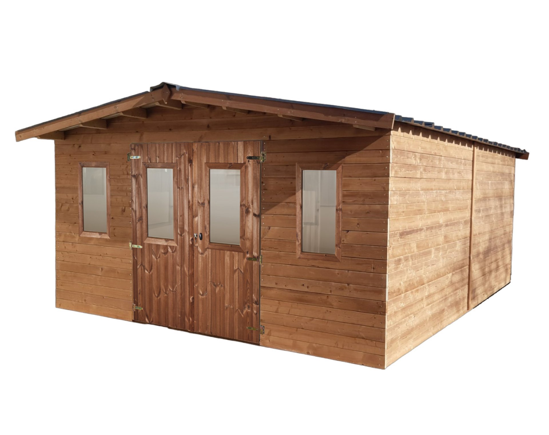 L'Abri Thermabri double pente en bois thermochauffé est un produit haut de gamme conçu pour offrir une grande résistance et durabilité. Il est fabriqué à partir de madriers 28mm de bois, traité dans un four à 215°C pour un procédé 100% naturel qui garantit une stabilité dimensionnelle des pièces de bois tout en respectant l'environnement. Ce produit est peu sensible aux attaques des insectes et nécessite un très faible entretien. Il est livré avec un kit de soubassement pour une installation facile sur une dalle béton. Le système de construction par connexion angulaire donne un style moderne à l'abri et la couverture en bac acier ultra résistante assure une protection optimale. Il est destiné à un usage domestique pour le rangement de produits non dangereux. Il est recommandé d'appliquer un saturateur ou une huile de bardage pour préserver le bois.