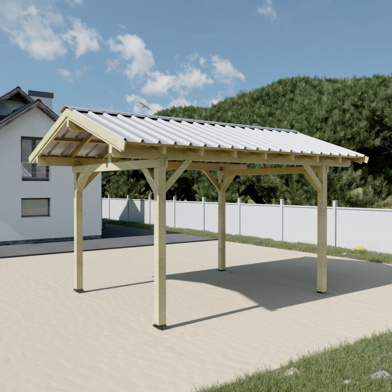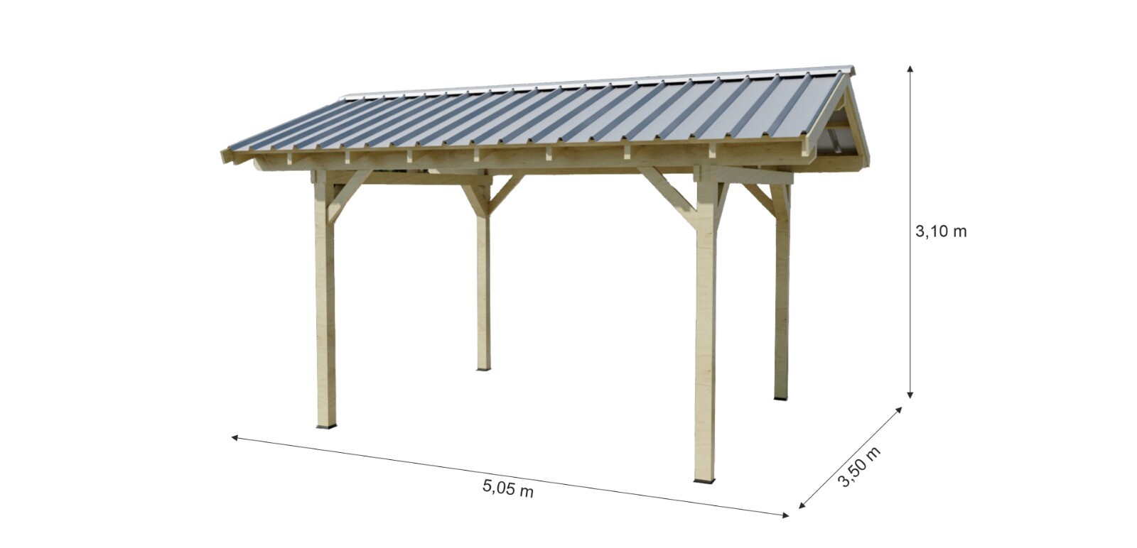Auvent 1 voitures en sapin du Nord contrecollé assemblage traditionnel BAC ACIER