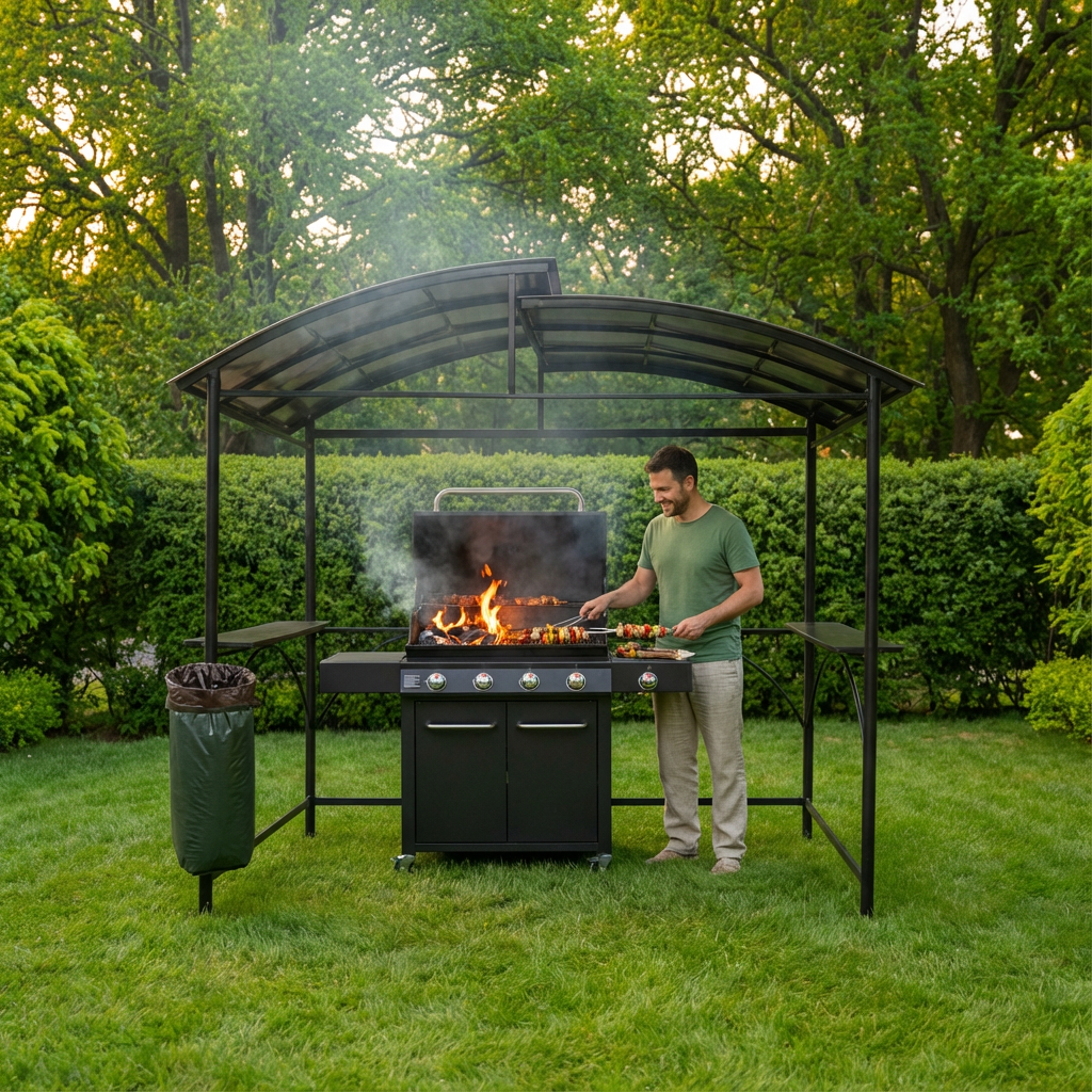 | Soutien culinaire de premier choix, le carport barbecue CAR 2415 AC dispose de 2 tablettes latérales porte-plats et accessoires larges et solides, apportant un | |