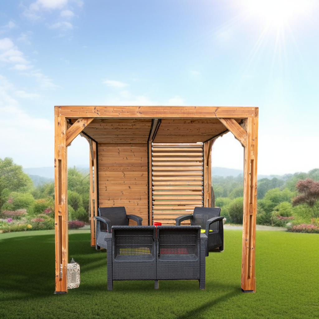 La Pergola THERMAUVENT est un produit de qualité en bois thermo-chauffé pour une longévité accrue. Le bois subit un traitement à très haute température dans un four à 215°C, procédé naturel qui garantit une stabilité dimensionnelle, une protection contre les insectes et une réduction de l'absorption d'humidité. Ce traitement nécessite peu d'entretien et seulement une coloration à des fins esthétiques. La Pergola respecte l'environnement en utilisant un processus écologique avec des matériaux naturels et recyclables. Elle valorise les essences de bois français en remplaçant les bois tropicaux. La garantie de 10 ans couvre l'attaque d'insectes et le pourrissement. La Pergola THERMAUVENT est fabriquée en France et est certifiée PEFC. Son toit est équipé de ventelles mobiles pour ajuster la lumière et le vent, et un mur est inclus pour plus d'intimité.