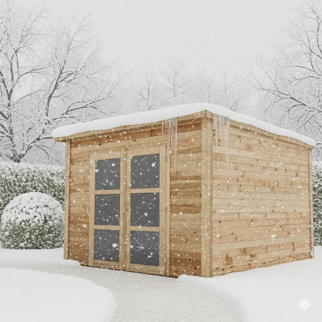 - Abri façon Pool House au design moderne et épuré avec son toit plat et ses portes semi-vitrées