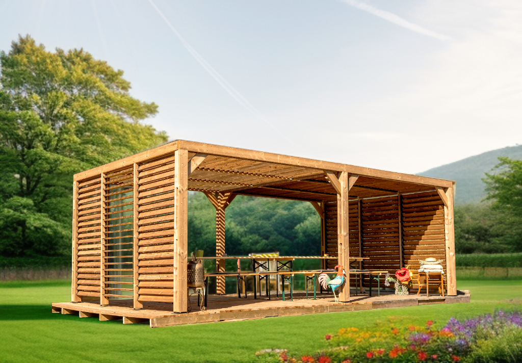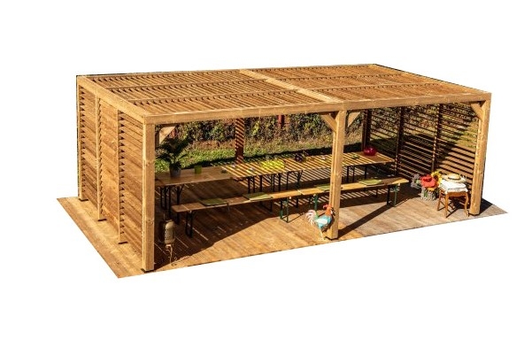 Une plus grande résistance et durabilité du bois grâce au procédé de traitement à très haute température dans un four à 215°C. Ce traitement est une technologie naturelle qui permet une stabilité dimensionnelle des pièces de bois ; les insectes n'attaquent plus le bois et les pièces n'absorbent plus l'humidité ambiante. Le bois ne nécessite plus qu'une coloration à des fins esthétiques, mais pas de traitement répétitif tous les ans