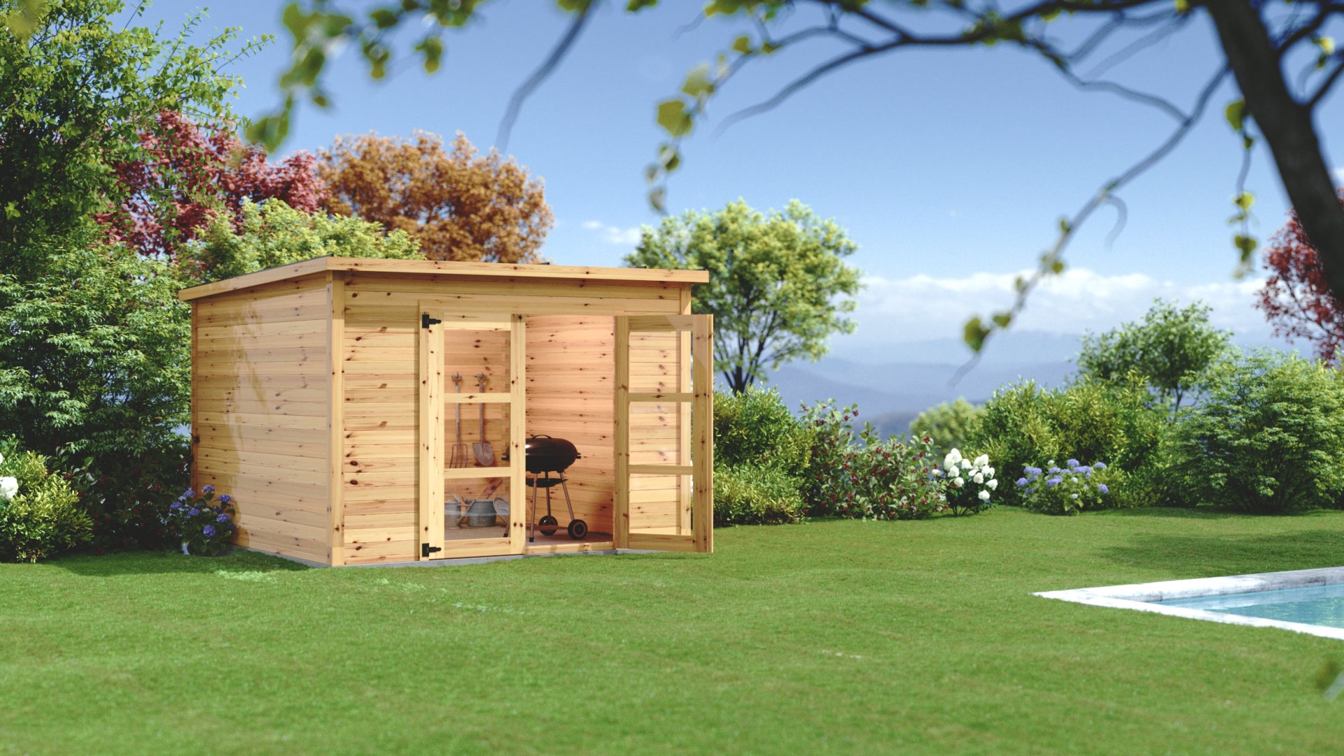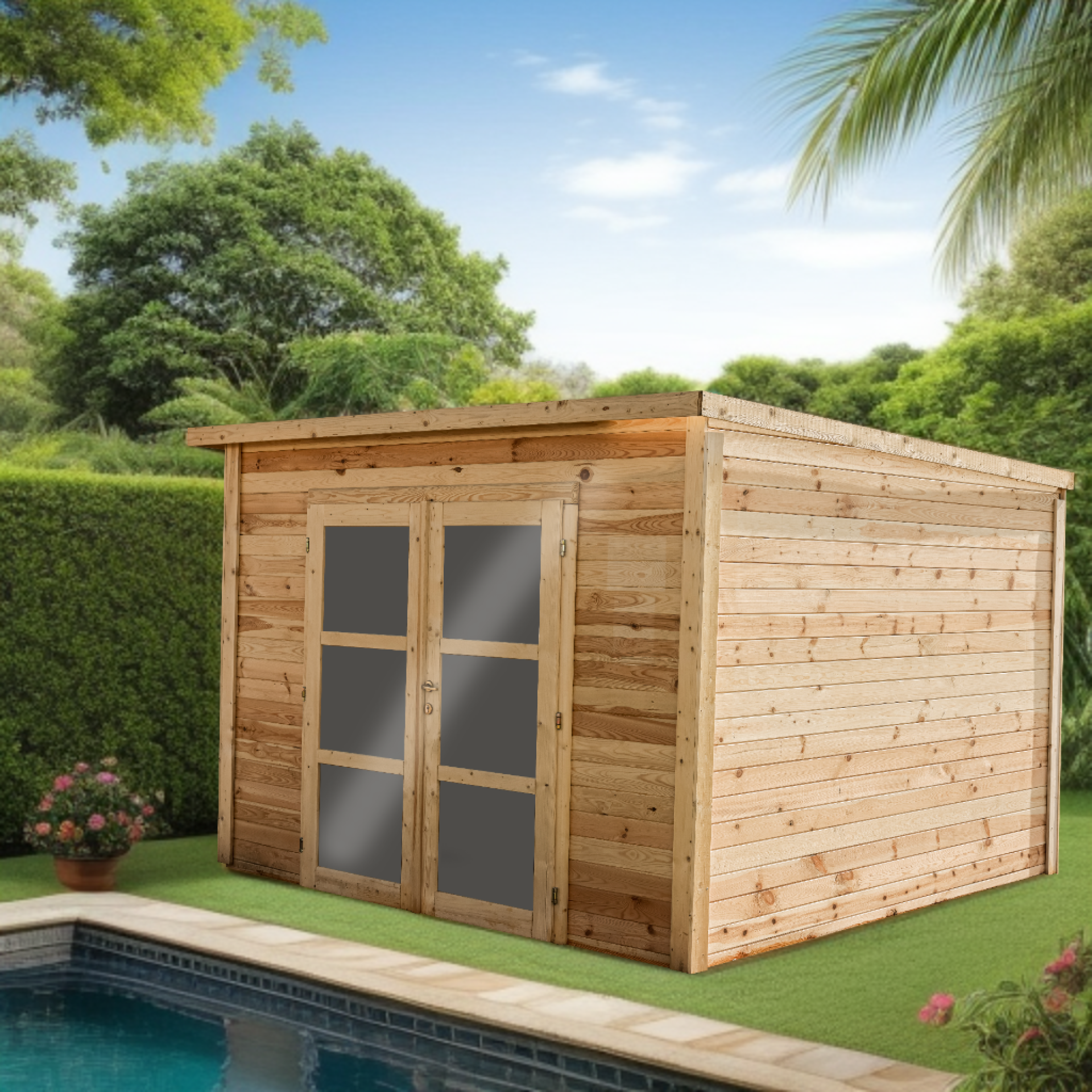 Chez Foresta, nous avons développé ce magnifique abri façon Pool House, combinant esthétique moderne et fonctionnalité optimale. Son design épuré avec un toit plat et des portes semi-vitrées le positionne comme un élément incontournable pour valoriser votre extérieur. La double porte, bien pensée, n'est pas qu'un simple détail esthétique. Elle facilite grandement le mouvement des objets volumineux et encombrants, offrant ainsi une solution parfaite pour vos besoins de rangement ou d'aménagement. La sécurité étant une de nos priorités, nous avons intégré un système de porte doté d'une serrure à barillet robuste. Avec Foresta, vous pouvez être assuré que vos biens sont bien protégés. La luminosité est au rendez-vous grâce à sa menuiserie en véritable verre. Elle permet une diffusion naturelle de la lumière à l'intérieur, créant un espace accueillant et chaleureux. Et ce n'est pas tout, sa conception innovante avec un système de parois à connexion angulaire assure non seulement un design moderne mais aussi une structure solide et durable. Chez Foresta, nous ne faisons pas que créer des abris, nous concevons des espaces de vie extérieurs. Optez pour notre Pool House et faites de votre jardin un véritable havre de paix, alliant beauté et fonctionnalité.