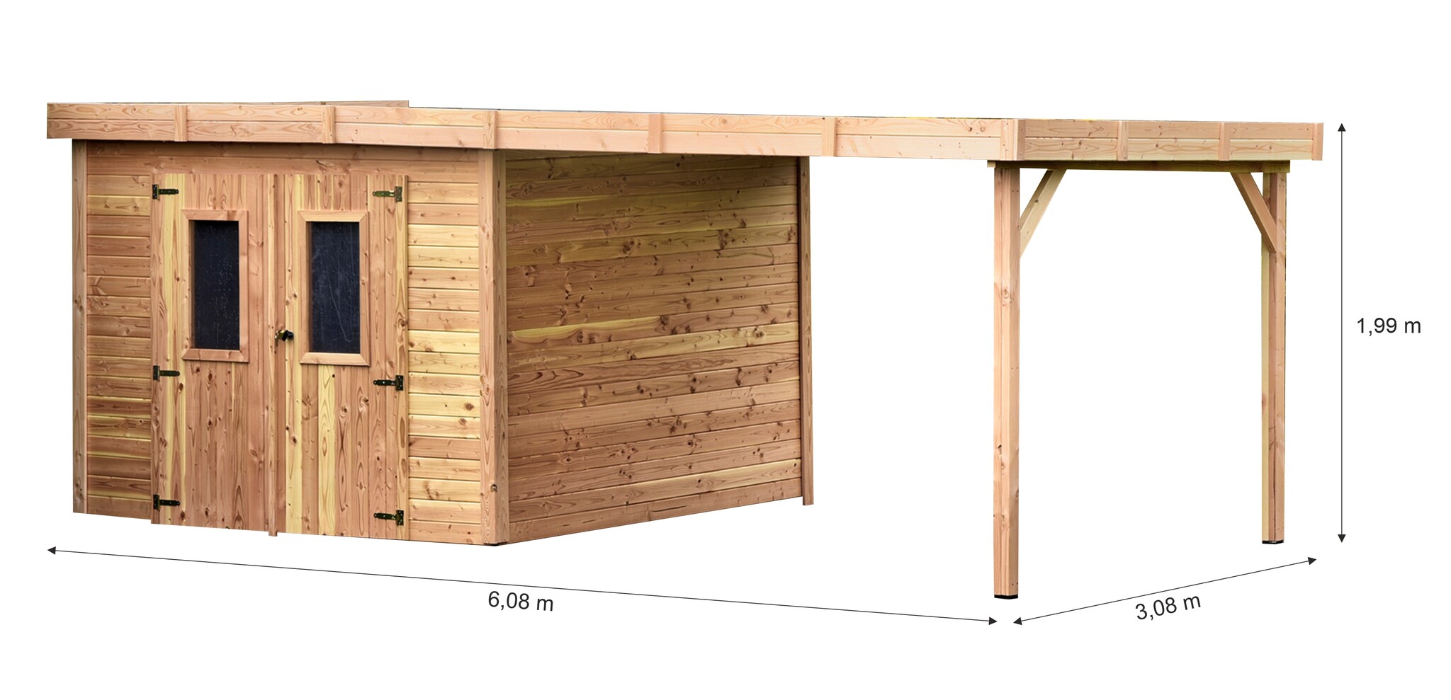 | Hors tout | 6,08 x 3,02 m = 18,36 m² (surface du toit) |