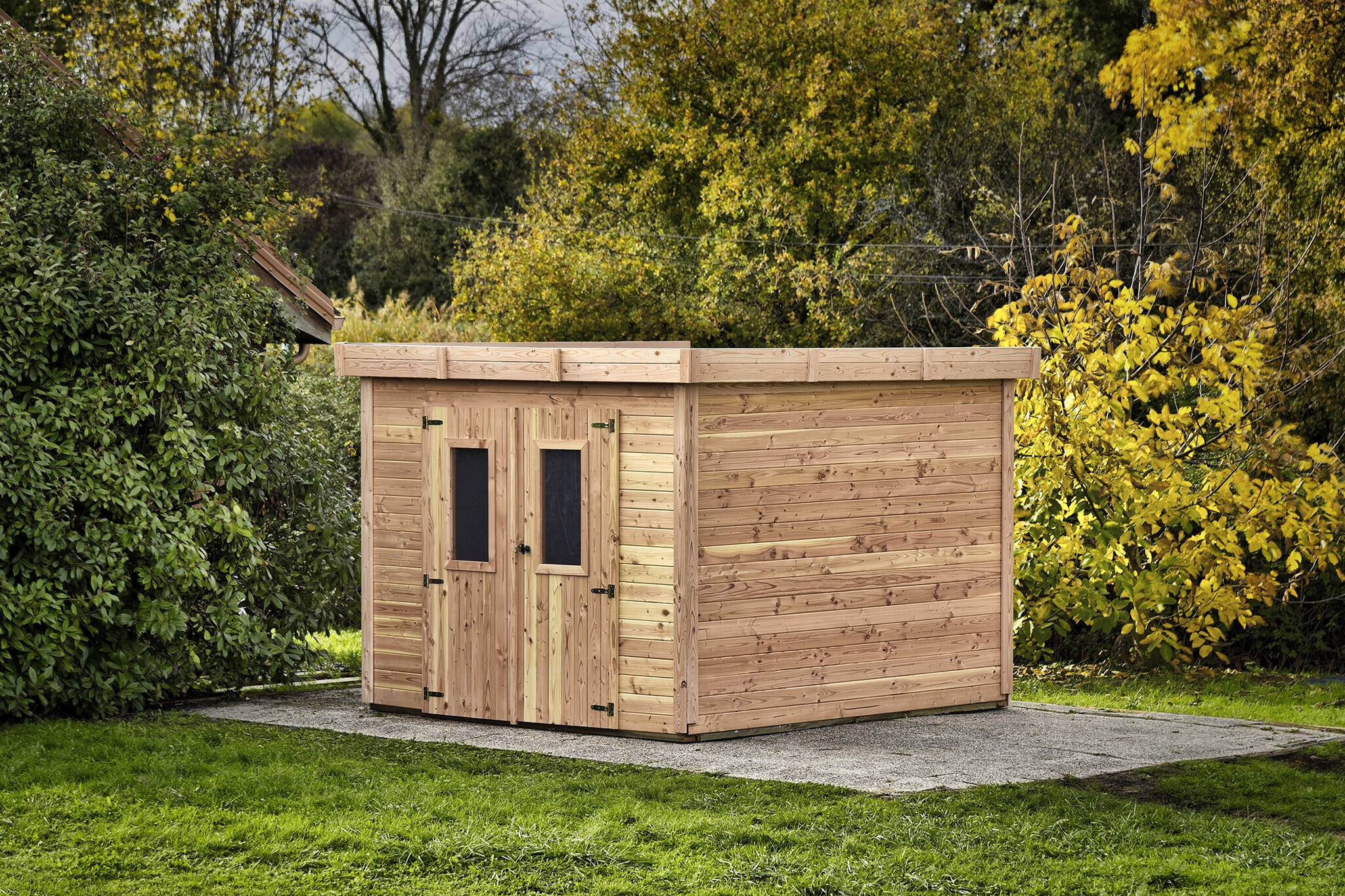 Abri SICILIA épicéa - Madriers 2822 - Toit plat polycarbonate