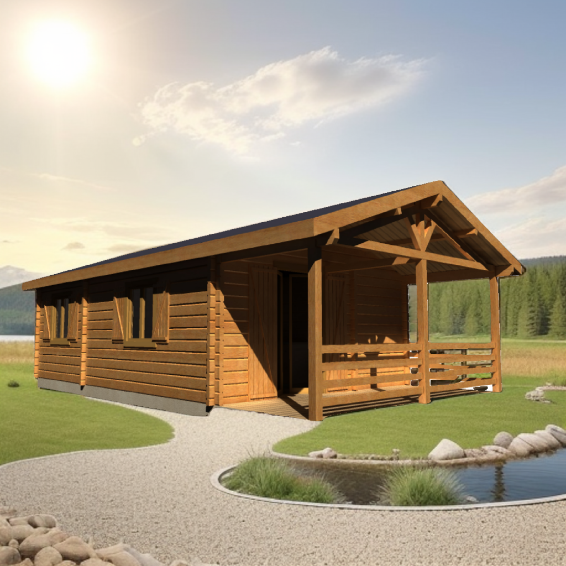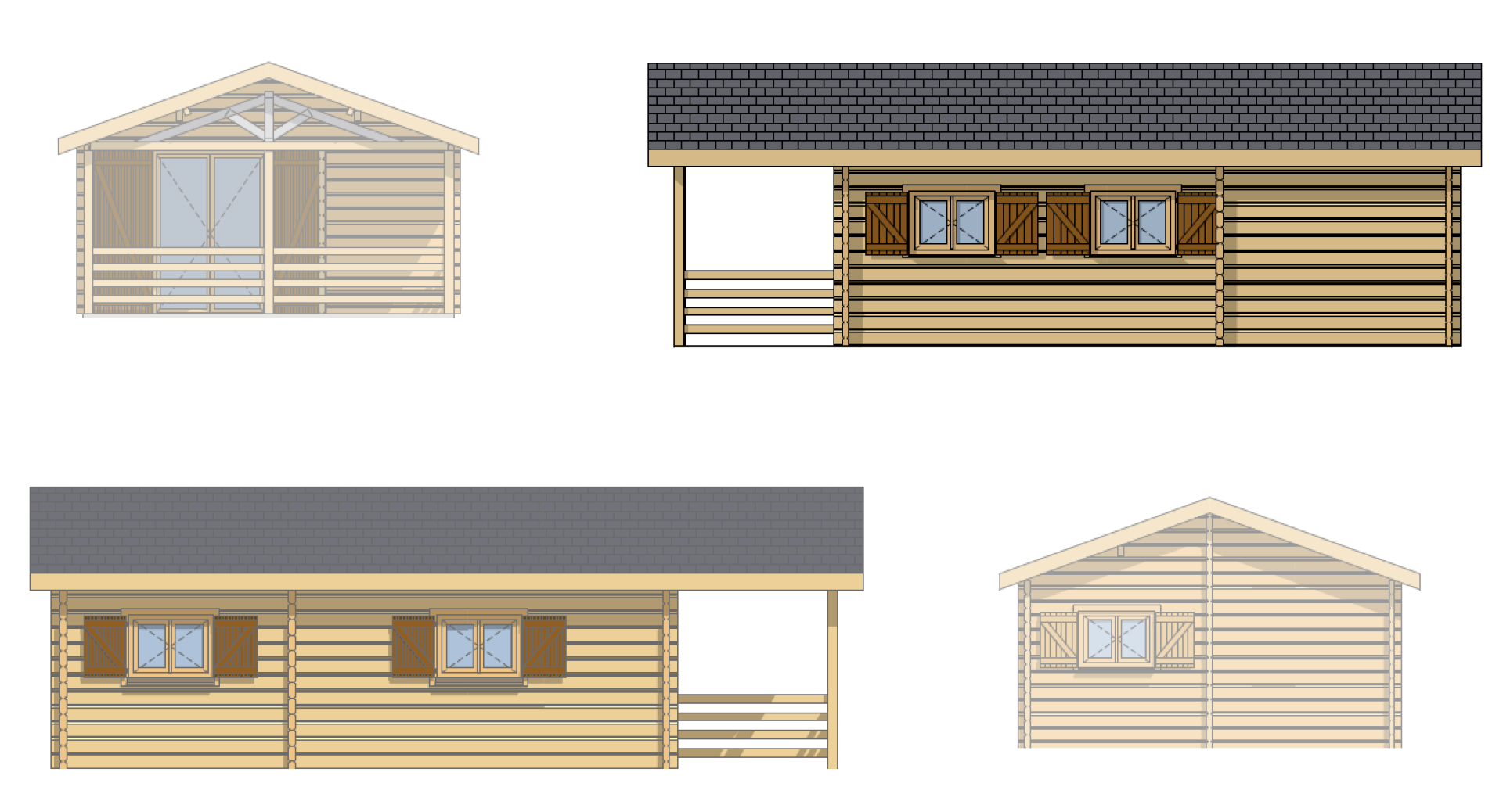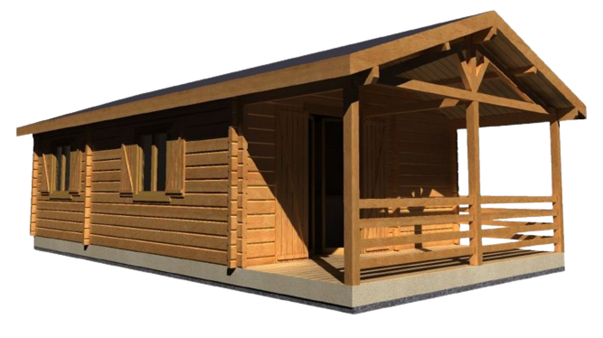 FORESTA fabrique et livre des constructions en bois de 80 mm d’épaisseur qui sont des structures solides qui peuvent servir de base à une habitation mais à condition d’effectuer des travaux supplémentaires d’isolation du toit, des murs, de la dalle, etc… de façon à répondre aux normes en vigueur qui permettent d’obtenir l’attestation RT2012, obligatoire pour obtenir le permis de construire pour habitation. La législation en vigueur prévoit un test d’étanchéité à la fin des travaux. Ces travaux sont à la charge du client et FORESTA ne peut pas être tenue responsable pour la qualité de l’ensemble de la construction finie. FORESTA ne délivre pas la garantie décennale. Le chalet ALABAMA se pose généralement sur une dalle béton à réaliser par le client. Afin de protéger le premier rang de madriers des murs contre les remontées d’humidité et de fixer au sol le chalet, FORESTA fourni un kit de soubassement en bois traité autoclave et feutre bitumé. La pose sur kit de soubassement permet d’obtenir un espace de 4 cm pour réaliser la finition du sol : chape et carrelage ou parquet bois. PAROIS Les parois de nos chalets sont fabriquées avec des madriers en sapin du nord contrecollé traité par immersion en usine classe II d’une épaisseur de 80 mm. Le profil des madriers est prévu pour un emboîtement entre eux grâce à des languettes et des rainures. Les assemblages d’angles sont des doubles encoches permettant d’obtenir une très bonne étanchéité. L’usinage est réalisé dans notre unité de production de NEVERS (France) sur un centre d’usinage à commande numérique moderne, extrêmement compétitif (matériel HUNDEGGER). Les murs seront posés et fixés sur une lisse basse en bois traitée autoclave. La lisse basse est fournie avec des fixations pour l’ancrer dans la dalle béton et un feutre bitumé pour couper les remontées d’humidité de la dalle en béton. Les parois en madriers sont livrées avec des tourillons en bois à placer dans des perçages verticaux (raidisseurs) afin de permettre le tassement de la construction tout en la renforçant. Des tiges filetées en acier avec des écrous sont également prévues pour renforcer les angles des parois. La structure de la maison (les parois) comporte des emplacements spécifiques pour accueillir l’installation électrique. Les perçages prévus permettent le passage des gaines après la pose de la maison. Un plan avec une proposition standard pour la pose de l’installation électrique est fourni. L’installation électrique n’est pas fournie avec la maison. Chacun des éléments composant les murs sera étiqueté individuellement afin de faciliter son identification lors de la pose. Les murs doivent être isolés pour correspondre aux normes en vigueur concernant une pièce d’habitation. Les travaux d’isolation par l’extérieur ou par l’intérieur sont à la charge du client. TOIT Construction avec une pente de toit à 20° supportant des tuiles de 45 kg/m² pour un emplacement situé en France, à une altitude inférieure ou égale à 900 m, dans une zone de neige 1 ou 2a. Composition de la charpente : pannes de section 190 mm x 80 mm en sapin du nord contrecollé traité par immersion en usine classe II, chevrons en sapin traité en usine par immersion classe II. Solivage en bois massif traité classe II section 120 x 45 mm fourni pour soutenir un éventuel plafond des chambres à faire par le client après avoir réalisé les travaux d’isolation. Finition des avant - toits en lambris sapin du nord sec section 9 x 105 mm fixés sur structures en bois de 95 x 45 mm. Pose de planches de rive en bois de section 21 x 170 mm. COUVERTURE Couverture en shingle auto collant (feutre bitumé renforcée de fibres de verre et colorée par des granulés minéraux) garantie 10 ans. Pose par clouage avec pointes spécifiques sur une volige de toit en dalles OSB 3 rainurées bouvetées épaisseur 15 mm. L’aspect « ardoises » et le choix de quatre couleurs (rouge flammé, vert, bleu ardoise et brun) permettent l’utilisation du produit dans toutes les régions de la France. Les gouttières et les descentes d’eau pluviale ne sont pas fournies. La toiture doit être isolée pour correspondre aux normes en vigueur concernant une pièce d’habitation. Les travaux d’isolation sont à la charge du client. Pour éviter les ponts thermiques, nous conseillons une isolation entre les chevrons épaisseur 100 mm croisée avec une deuxième couche d’isolant entre les pannes épaisseur 100 mm. MENUISERIES Les menuiseries extérieures sont en sapin contrecollé traité insecticide, fongicide et hydrofuge à double vitrage 4 – 12 – 4 mm : - 5 fenêtres dimensions 100 x 75 cm, sapin traité insecticide fongicide et hydrofuge à double vitrage 4 – 12 – 4 mm - 1 porte fenêtre sapin traité insecticide fongicide et hydrofuge dimensions 155 x 220 cm à double vitrage 4 – 12 – 4 mm, avec fermeture 5 points - 4 portes intérieures en bois 73 x 204 cm. Quincaillerie : toute quincaillerie nécessaire à la menuiserie prévue. Les menuiseries se posent dans un pré-cadre bois qui est lui-même fixé dans la réservation prévue dans la paroi. Le pré-cadre est fourni aux dimensions spécifiques de la menuiserie et permet le tassement de la construction en madriers tout en protégeant les menuiseries. L’étanchéité entre le pré-cadre et les parois est réalisée avec une mousse PU à cellules ouvertes imprégnée à cœur d'une résine acrylique stable ACRYL 300 10 x 15mm. Les volets pour les fenêtres sont fournis dans le prix de base. Ils sont en bois massif, de type barre / écharpe. La quincaillerie des volets est prévue. La porte fenêtre est prévue avec un volet bois amovible. TERRASSE Terrasse en bois non couverte. Lames de terrasse en pin traité autoclave section 95 x 20 mm. Un poteau en sapin du nord contrecollé, traité par immersion dans l’usine class