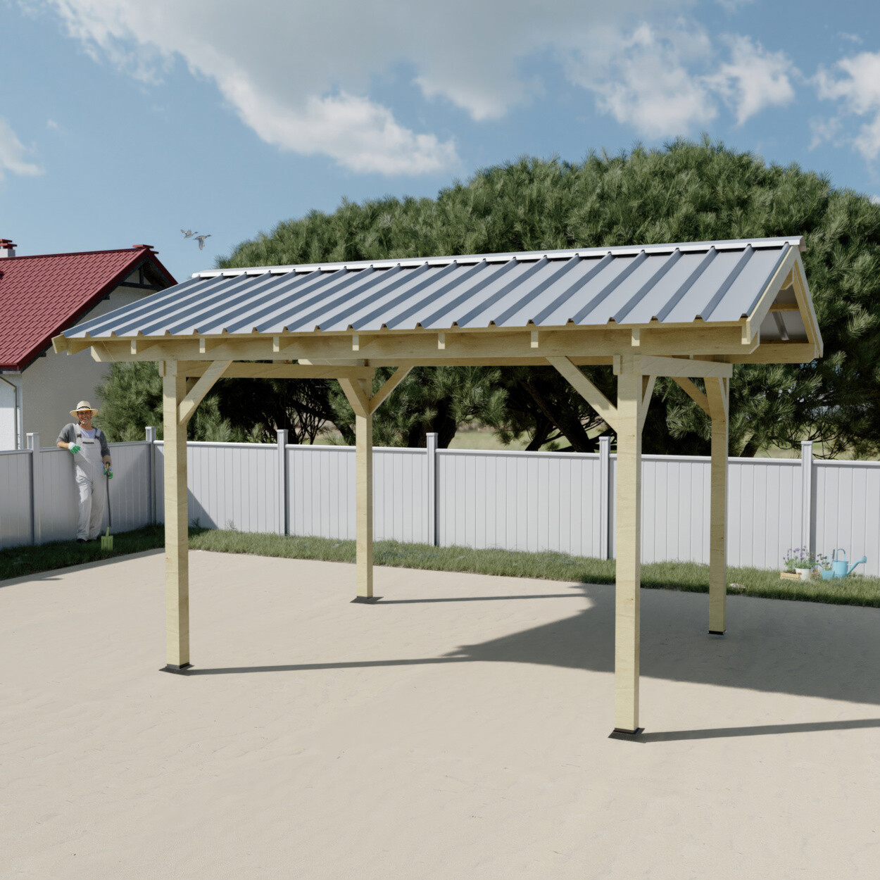 Auvent 1 voitures en sapin du Nord contrecollé assemblage traditionnel BAC ACIER