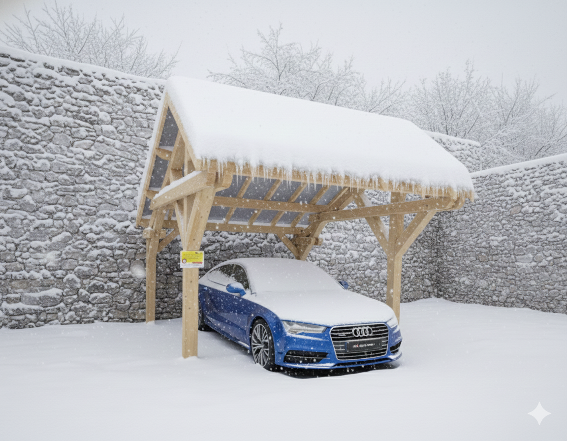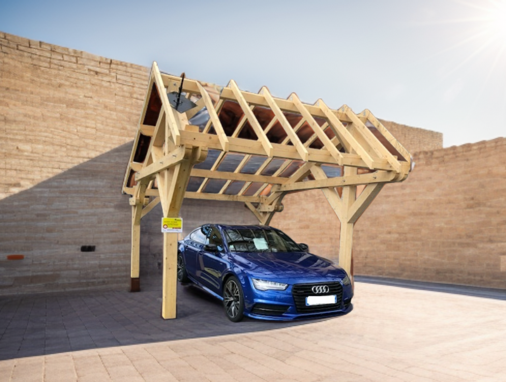 "Le Carport double pente asymétrique avec préparation pour couverture standard est un produit de haute qualité, conçu pour durer. Il est fabriqué en France avec des matériaux de première qualité, notamment des poteaux en section 16x16 cm très gros et résistants, pour une grande stabilité. Le montage se fait par tenon et mortaise pour un assemblage solide. Le carport est doté d'une conception originale et traditionnelle, ajoutant une touche de style à votre espace extérieur. Il peut être installé sur une dalle béton ou des plots, et les poteaux sont livrés avec des platines métalliques pour une fixation fiable au sol. Le Carport est certifié PEFC, garantissant une production durable et éco-responsable. La garantie de 2 ans offre une sérénité supplémentaire pour votre achat. Avec une capacité de charge de 50 kg/m2, il est parfait pour couvrir votre véhicule ou pour ranger vos objets extérieurs."