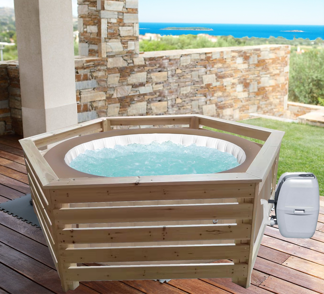 Habillage hexagonal pour spas et piscines gonflables, Bois, 2.35 x 1.84 m, 4.30m²