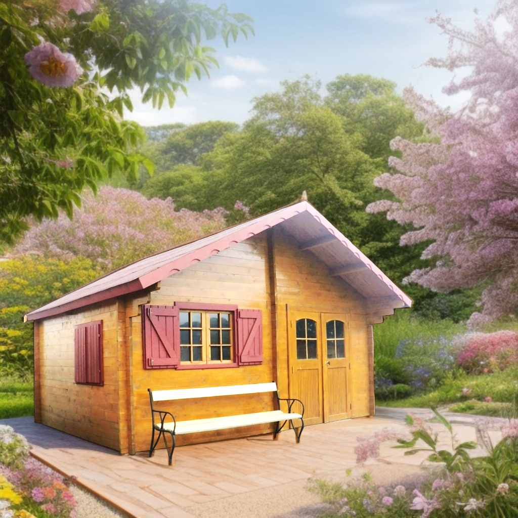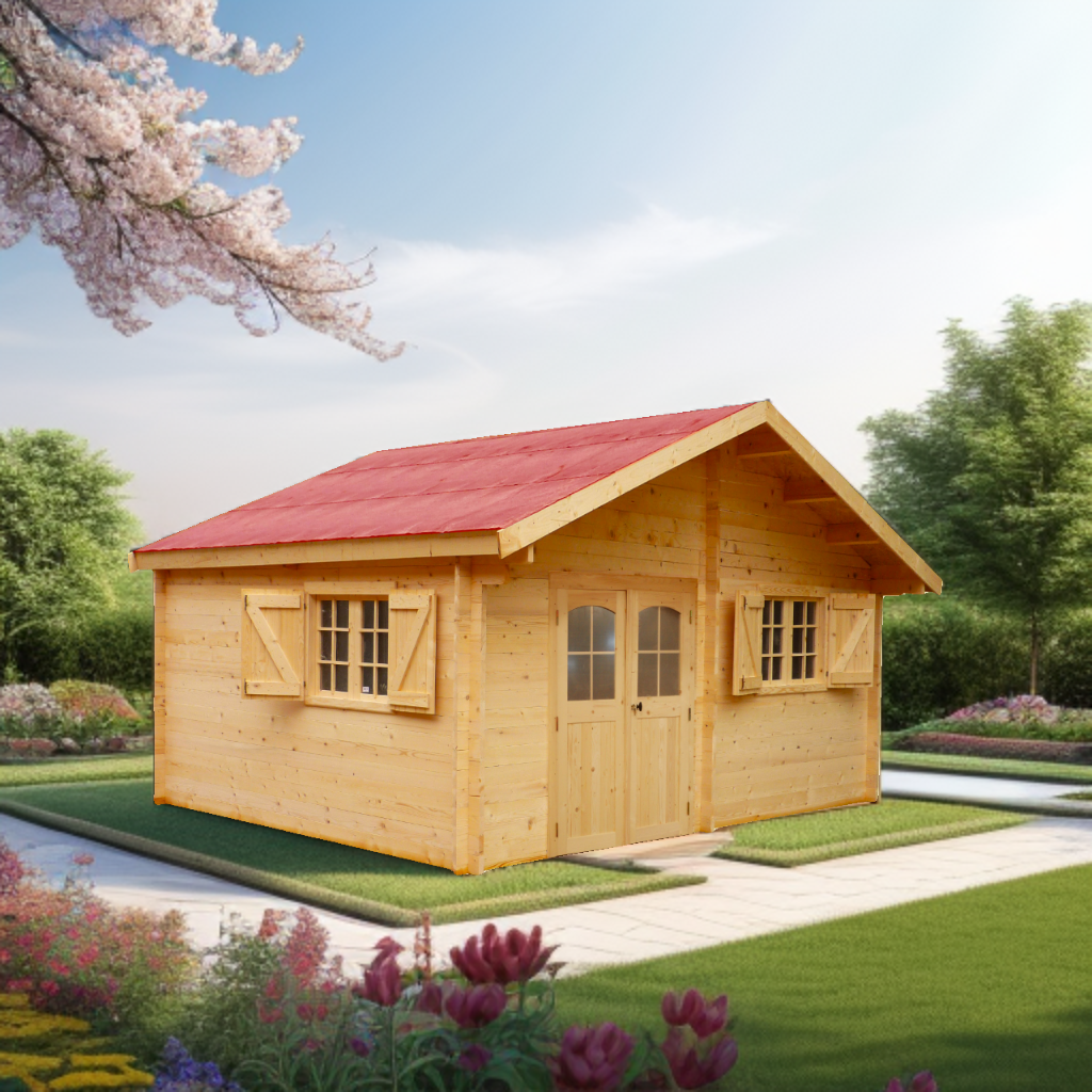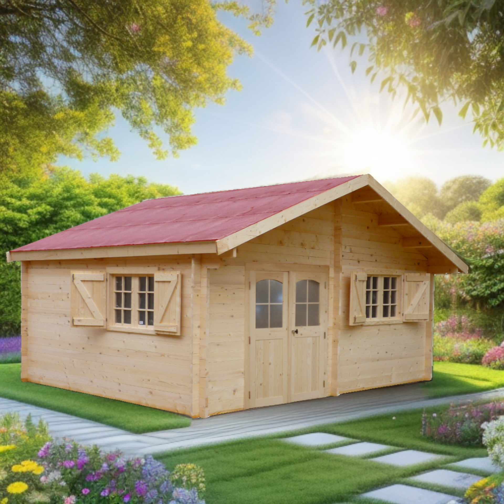 - Un abri 42 mm très bien proportionné avec madriers double rainurage