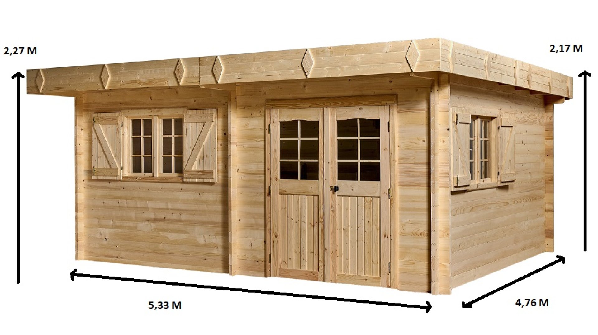 Abri Bretan, Madriers épicéa 42mm, .5.30 x 4.80m², 25.40m²