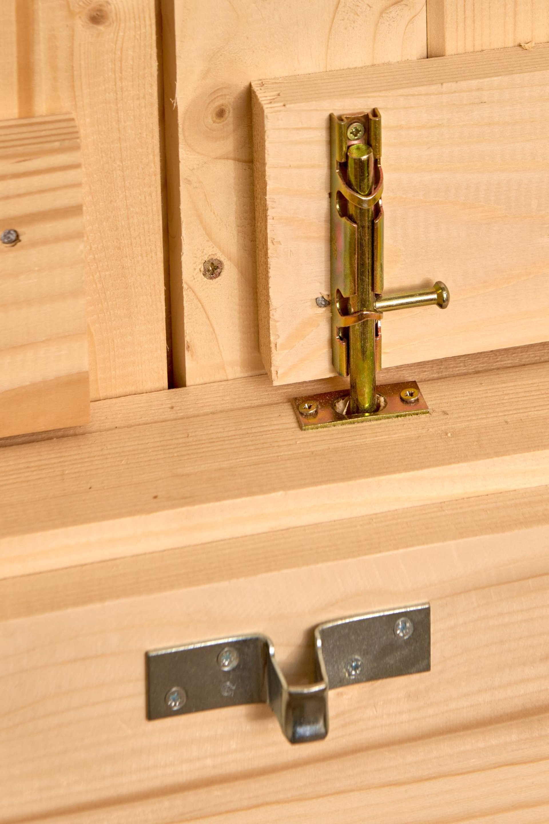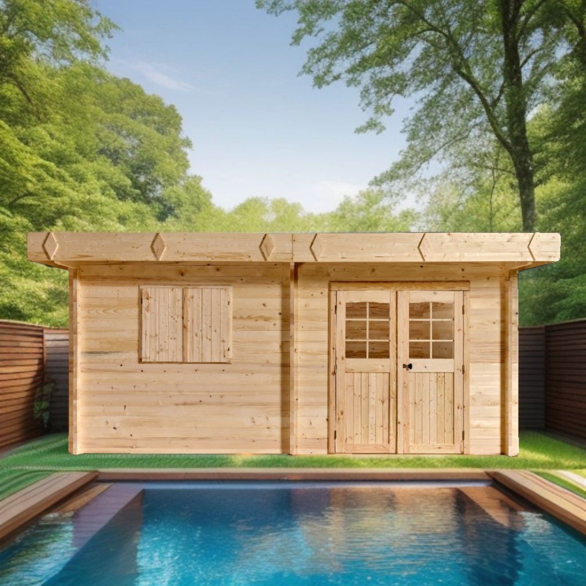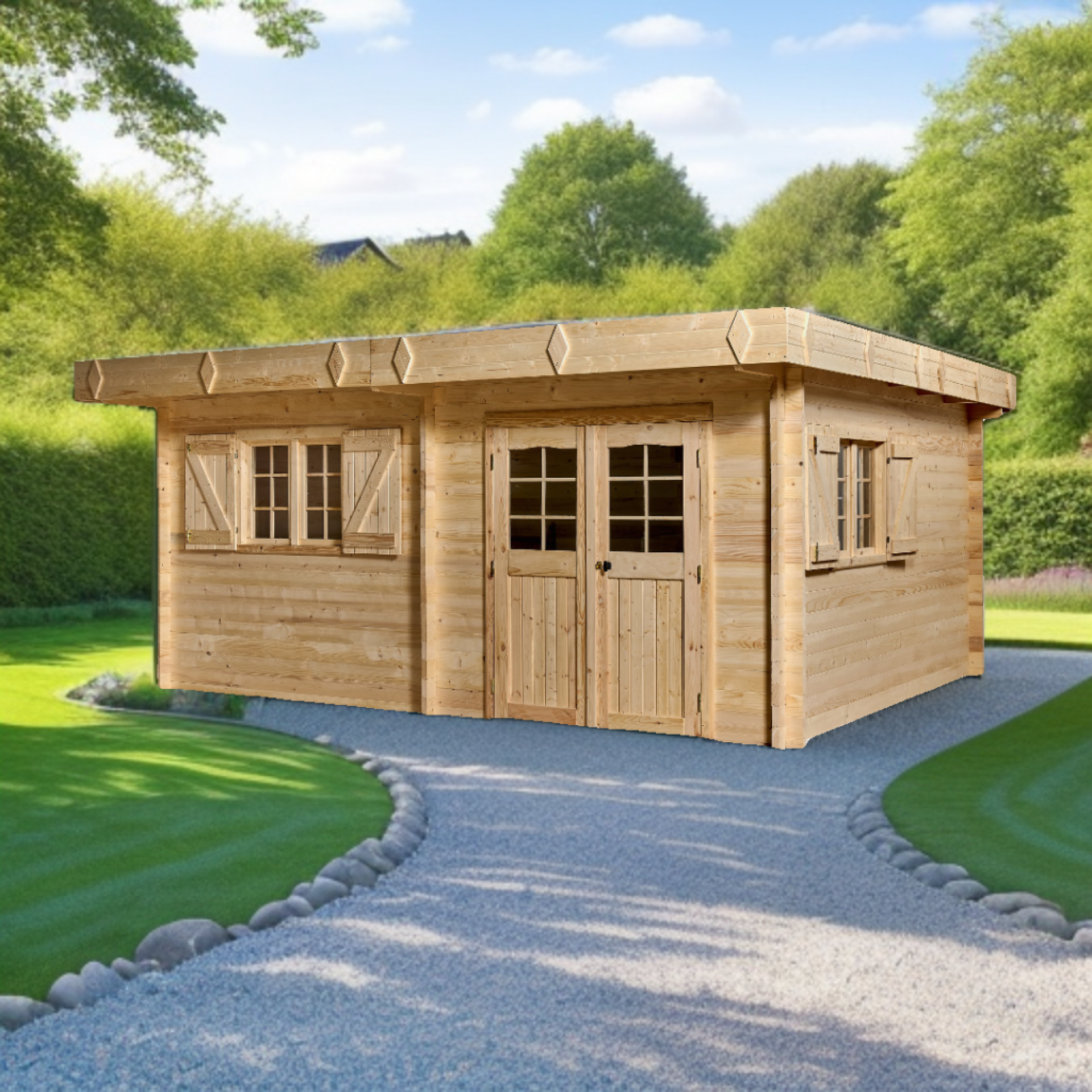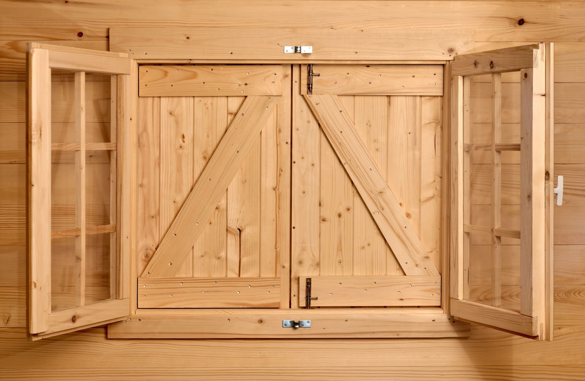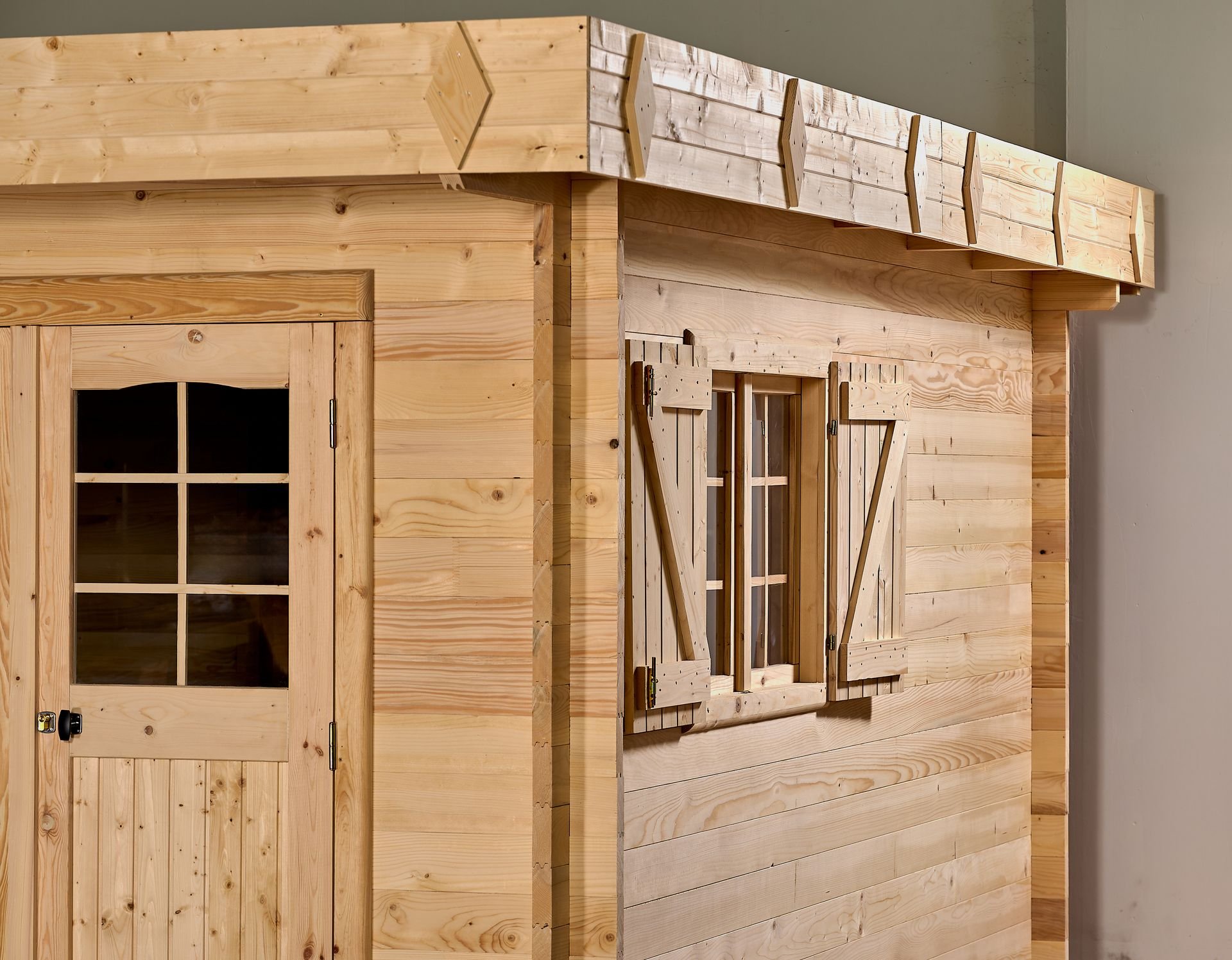 - Un abri 42 mm avec madriers double rainurage pour une très grande résistance dans le temps et un faible passage d'air très bien proportionné