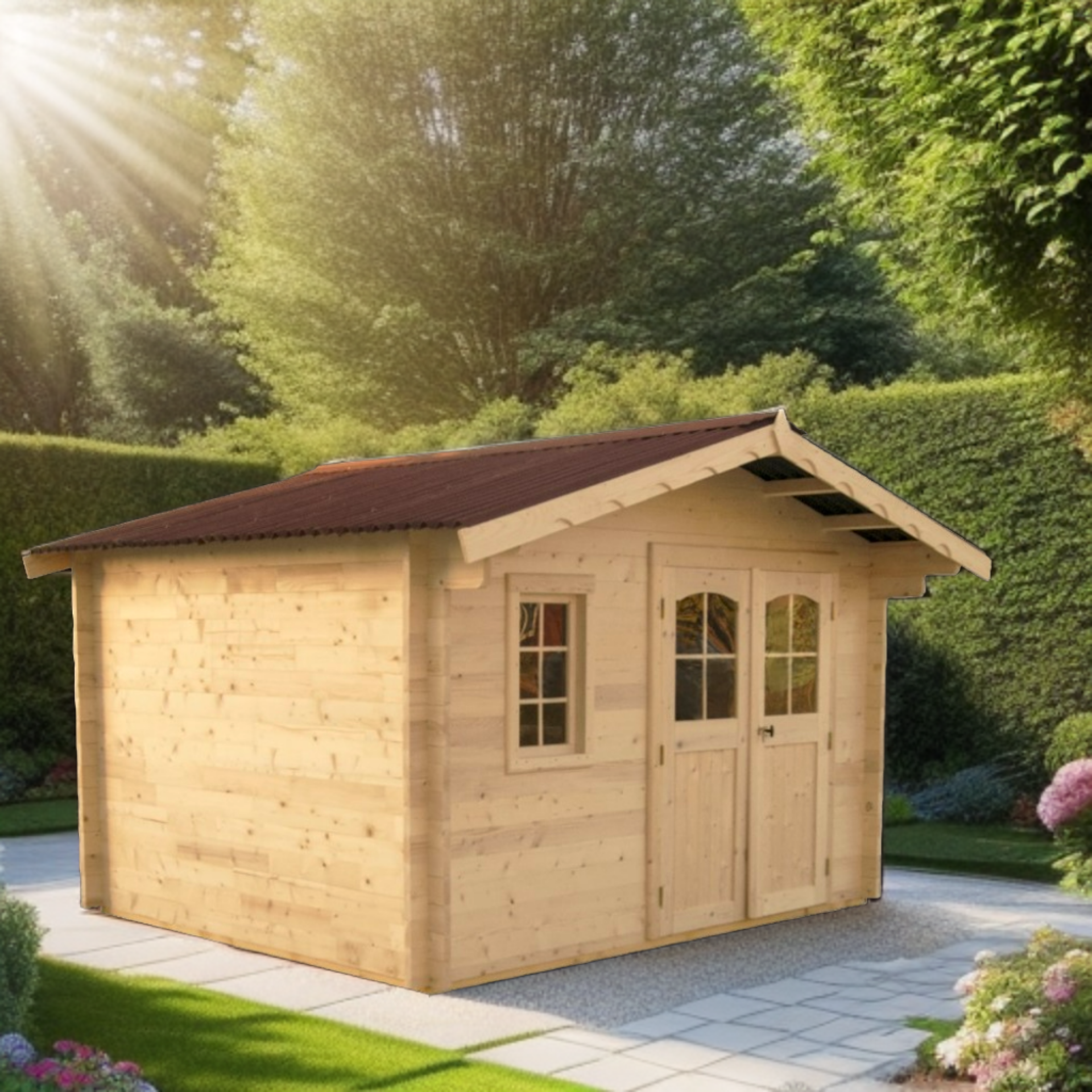 - Un abri 42 mm très bien proportionné avec madriers double rainurage
