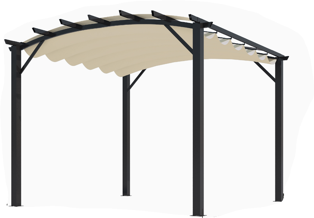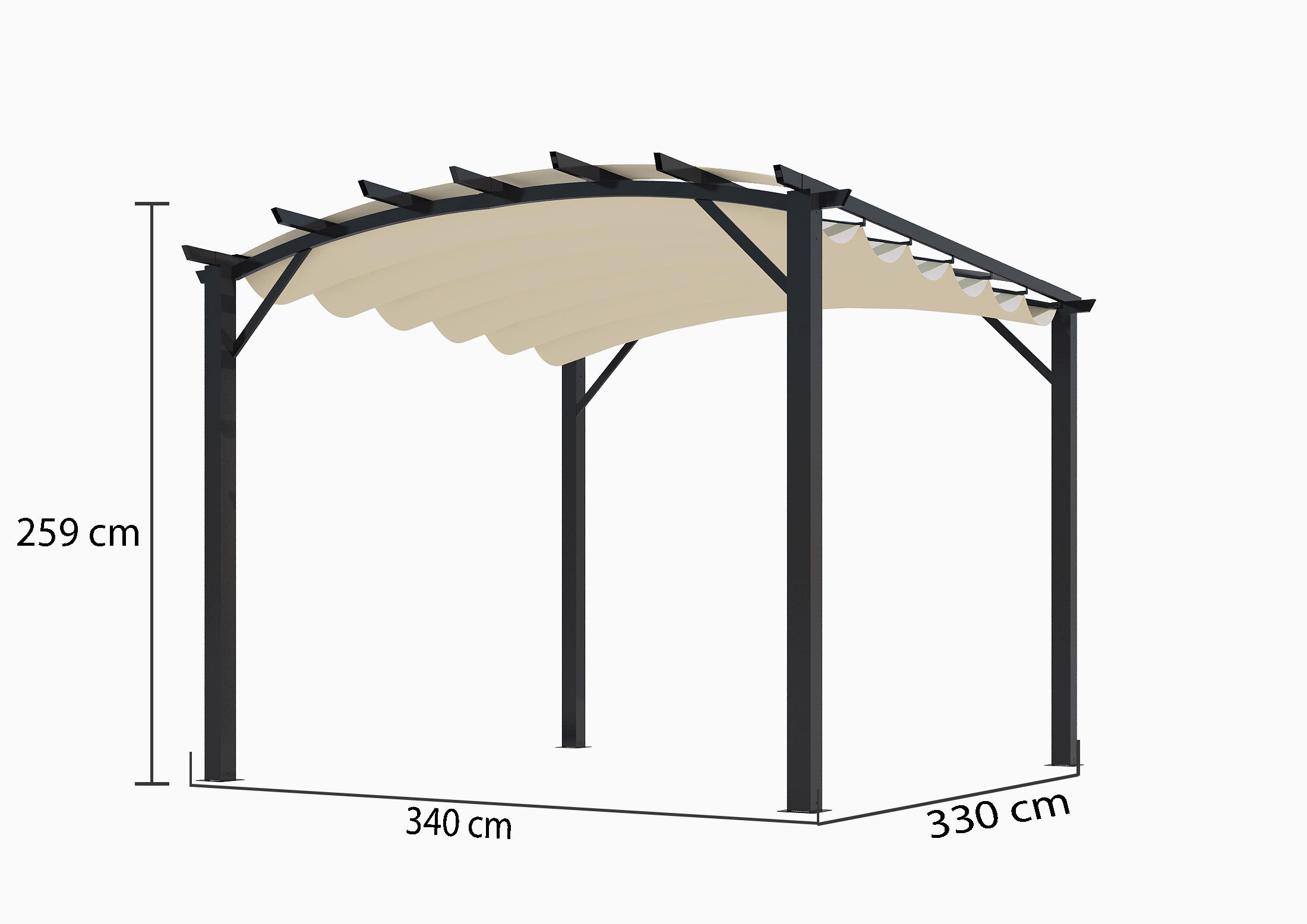 Pergola arche, structure mixte aluminium/acier coloris gris anthracite toile couleur écru, 3.40 x 3.30 m, 11.20m²