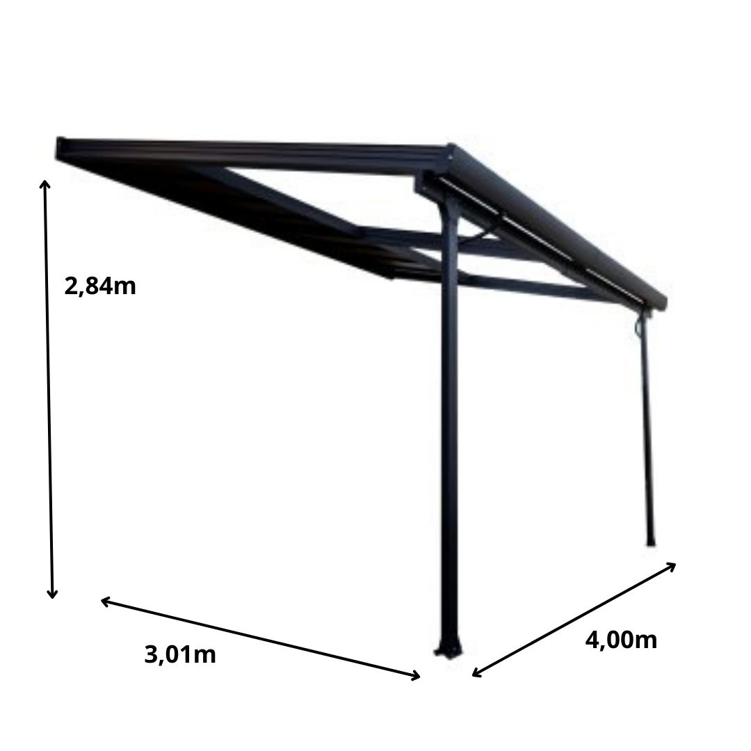 Toit terrasse, Aluminium avec toit amovible gris anthracite, 3.00 x 4.00, 12m²