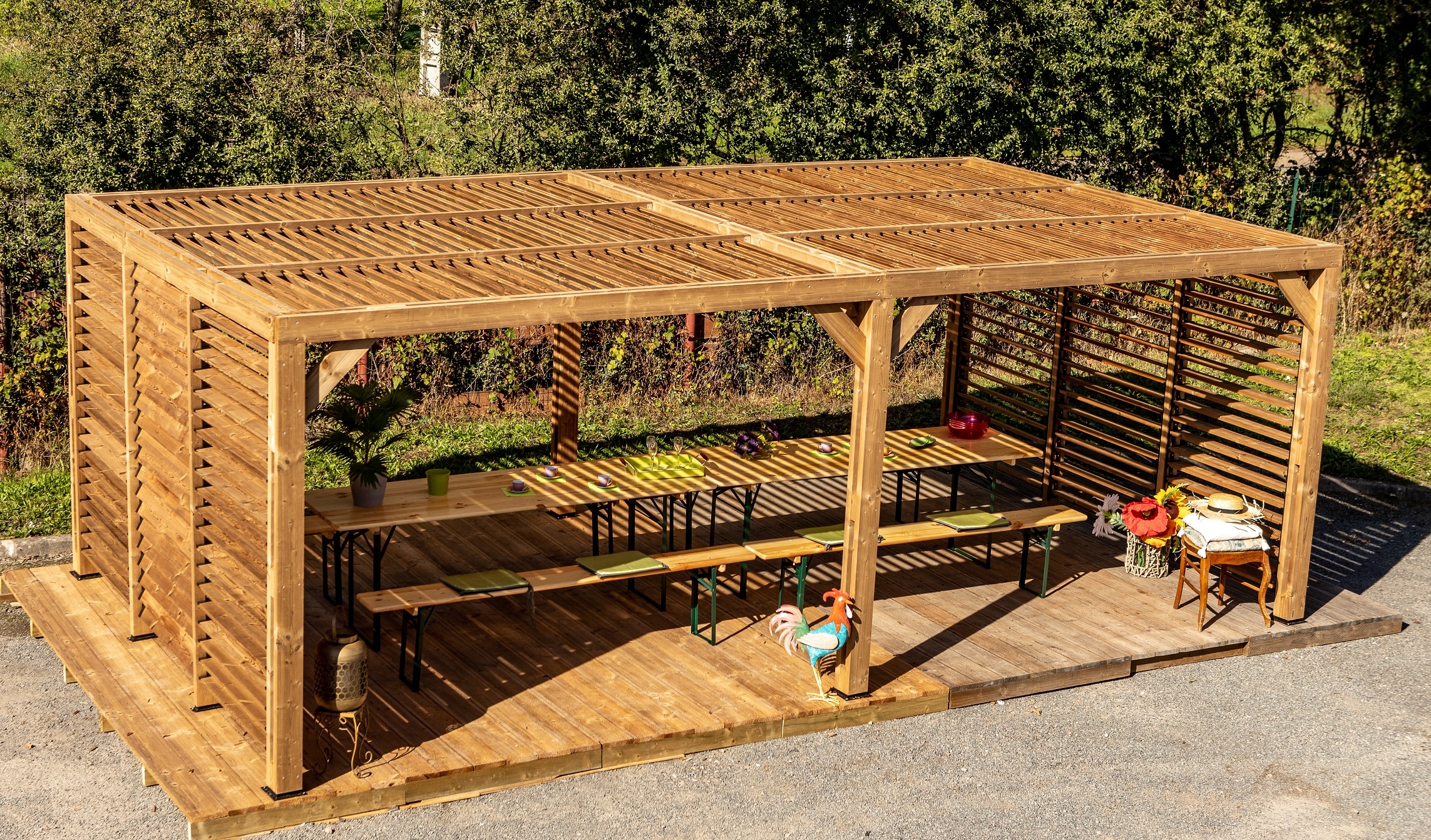 Une plus grande résistance et durabilité du bois grâce au procédé de traitement à très haute température dans un four à 215°C. Ce traitement est une technologie naturelle qui permet une stabilité dimensionnelle des pièces de bois ; les insectes n'attaquent plus le bois et les pièces n'absorbent plus l'humidité ambiante. Le bois ne nécessite plus qu'une coloration à des fins esthétiques, mais pas de traitement répétitif tous les ans